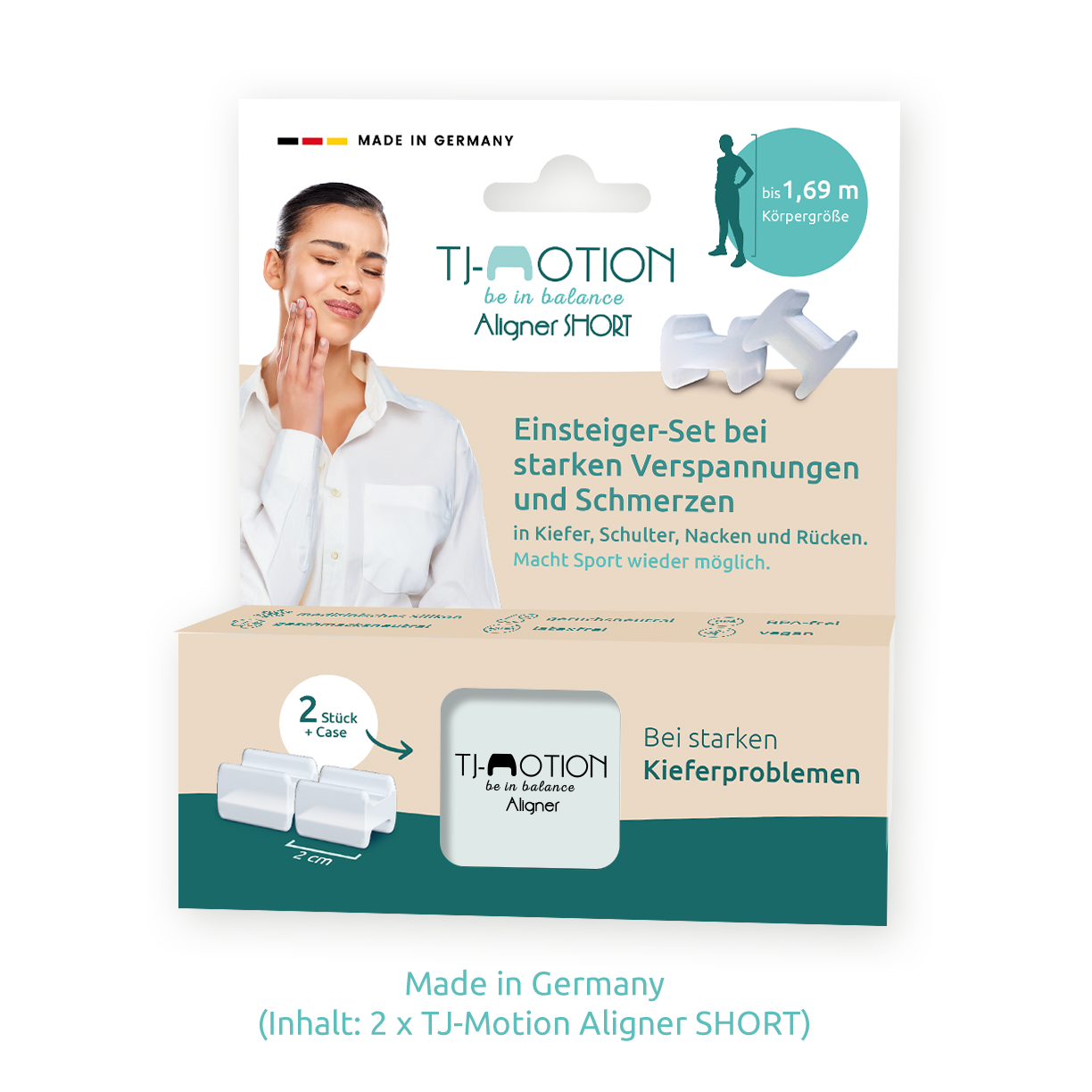 Die TJ-Motion Aligner SHORT dehnen sanft dein Kiefergelenk und die Kiefermuskulatur. Dadurch kann deine gesamte Schulter-, Nacken- und Rückenmuskulatur entspannt werden.