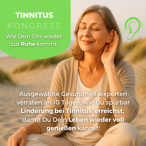 Ausgewählte Gesundheitsexperten zeigen dir in 10 Tagen, wie du deinen Tinnitus spürbar lindern kannst – mit fundiertem Wissen und praktischen Übungen. In diesem Online-Kongress bekommst du vielfältige Ansätze und alltagstaugliche Tipps rund um Tinnitus, Hören, Nervensystem und innere Balance, damit du dein Leben wieder entspannter genießen kannst.