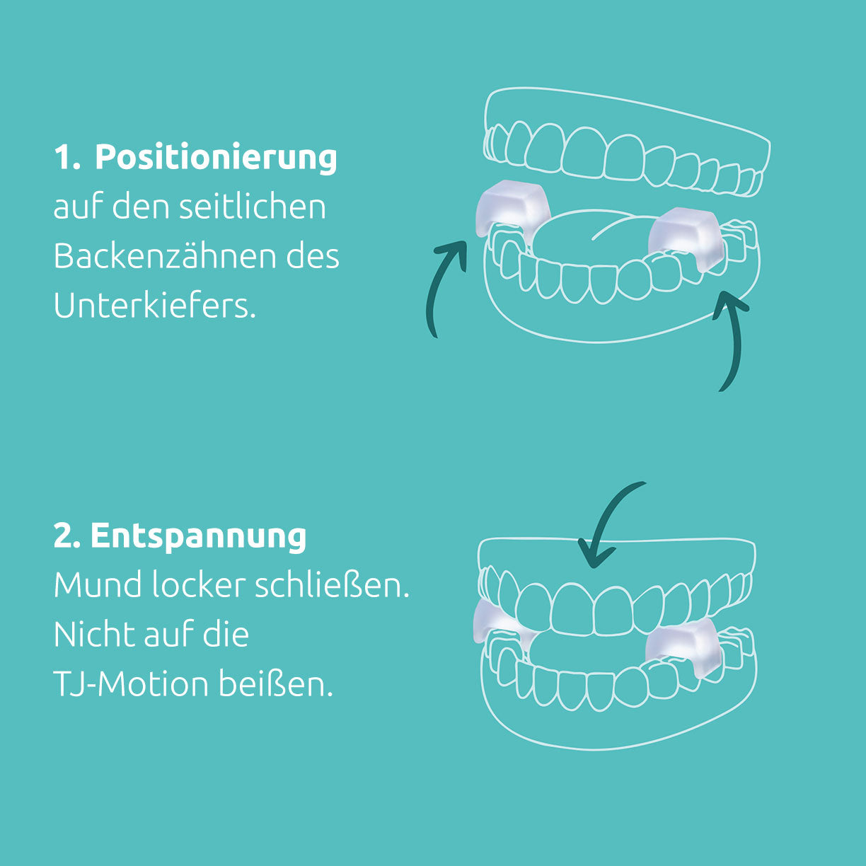 Die TJ-Motion aktivieren über eine sanfte Dehnung der Kiefermuskeln und des Kiefergelenkes den Entspannungsnerv - Nervus Vagus und entspannen dadurch die gesamte Kiefer-, Schulter-, Nacken- und Rückenmuskulatur. Dadurch können sich Verspannungen lösen und die Muskulatur kann mithilfe der TJ-Motion loslassen und entspannen.